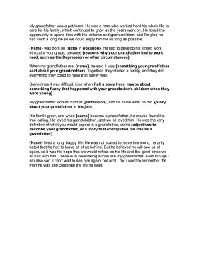 {Name} lived a long, happy life. He was not scared to leave this world; he only hated that he had to leave all of us behind. But he believed he will see us all again, so it was his hope that we would reflect on his life and the good times we all had with him. I believe in celebrating a man like my grandfather, even though I am also sad. I can't wait to see him again, but until I do, I want to remember the man he was and celebrate the life he lived.